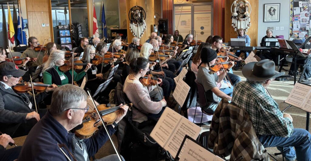 Funding from CADA helps Shivering Strings keep the cost of registration low for participants. “It’s also essential in helping us to hire and pay professional instructors. A big part of what keeps participants coming back is our instructors, who have exceptional skill when it comes to teaching and working with large groups of people.” In 2024, Shivering Strings Calgary instructors and performers included: Gordon Stobbe, creator of Shivering Strings (Nova Scotia), JJ Guy (Saskatoon, SK); Donna Turk (Forget, Sk); Randy Jones (High River, AB), and Troy McGillivray (Nova Scotia).