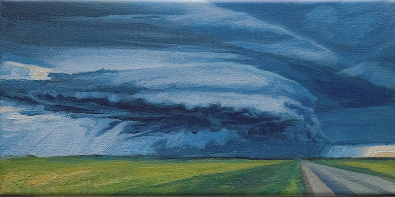 Weather the Storm is a representation of a thunderstorm, much like the one that caused devastating hail damage in August 2024. I wanted to illustrate the beauty of such strong forces of nature, paralleling the beauty of when neighbours come together to help and support each other during devastating events.
