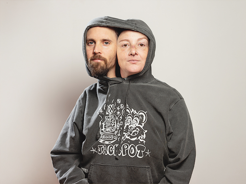 Gaptooth Sweatsuit is the visual art duo of Megan Kirk and Stephen Harper. Gaptooth Sweatsuit primarily works with local businesses, bands and artists to produce high-quality silkscreened products and limited edition print runs. They also maintain individual art practices under Jane Trash and Photomawf.